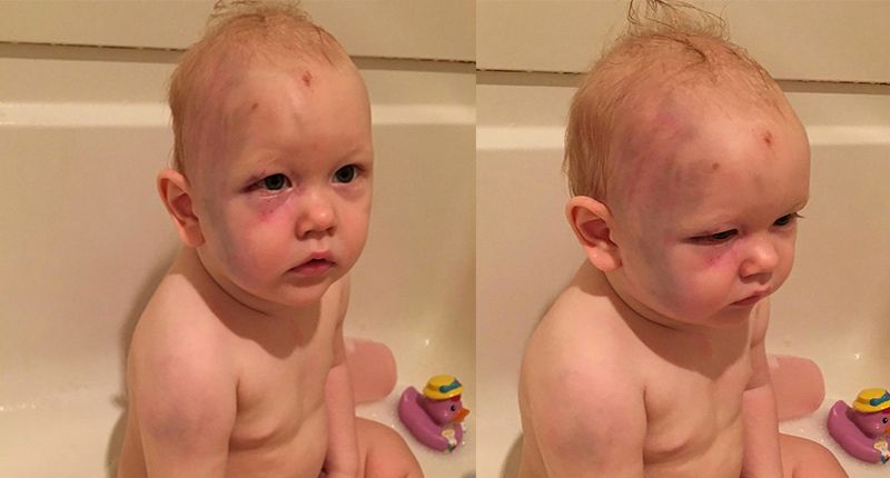 "The first thing I saw was a black eye," she said. "I thought maybe marker got on his face or something. When he turned over, his whole right side of his face — black and blue."