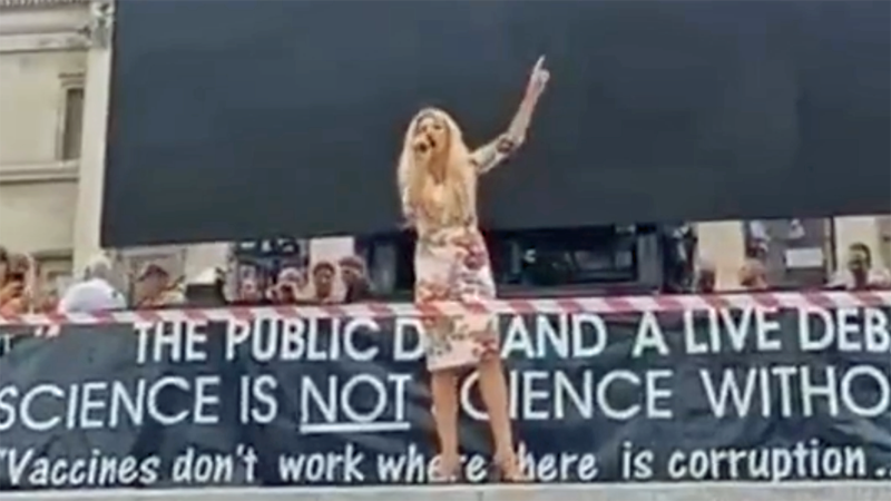 Conspiracy theorist Kate Shemirani suggested there could be Nuremberg-like trials where doctors and nurses would be hanged for administering the coronavirus vaccines, which promoted one British doctor to alert London's Metropolitan Police Service.