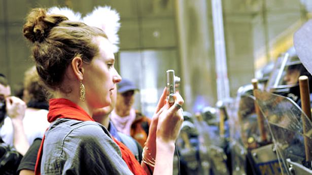 ["Woman recording police" on Shutterstock]