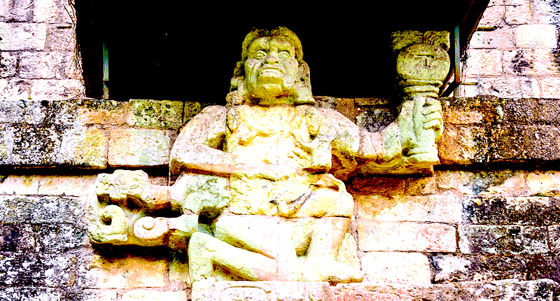 One of two simian sculptures on Temple 11, Howler Monkey Gods. Copan, Honduras (Shutterstock)