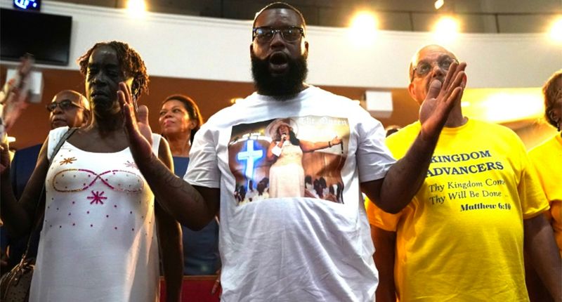 His eulogy had worshippers on their feet. Smartly dressed women raised their arms into the air and swayed to the music, as a few wiped away tears, with Jackson leading them in prayers and song.