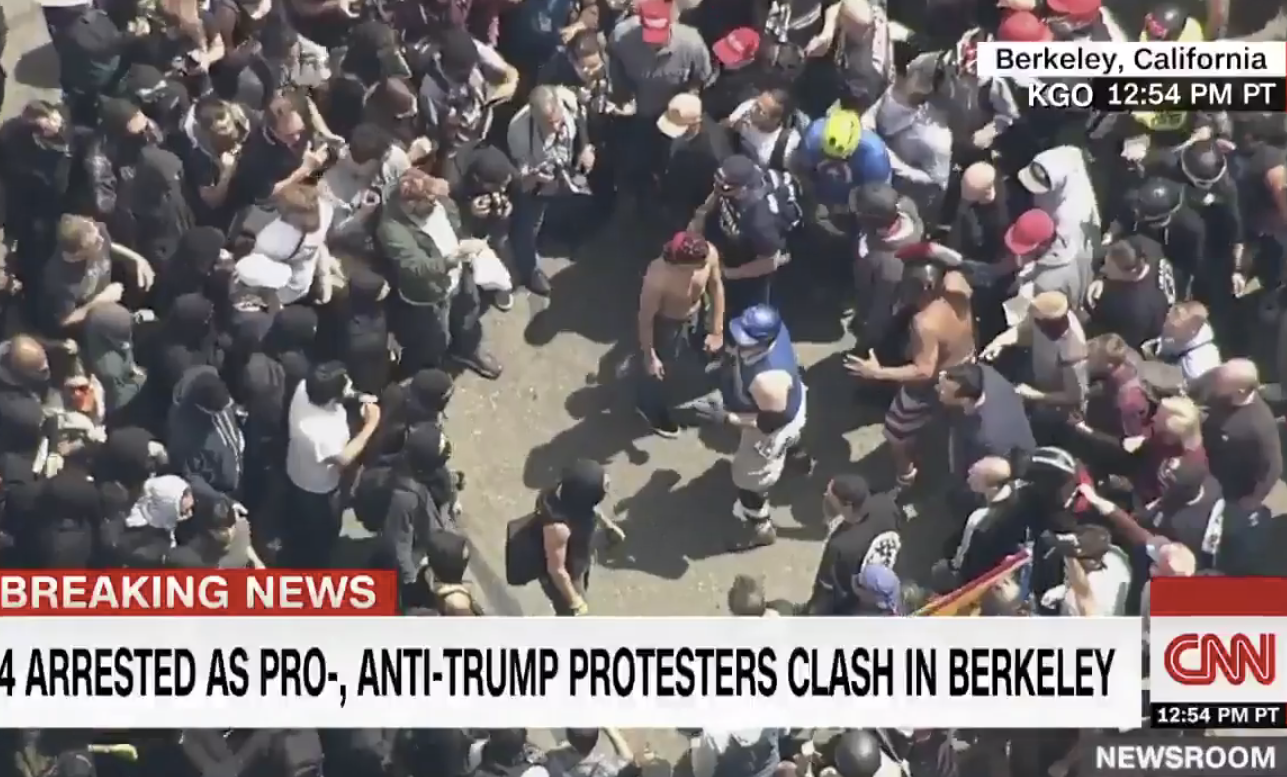 Protesters clash at Berkeley march on Saturday, 15 April 2017 (Screen capture)