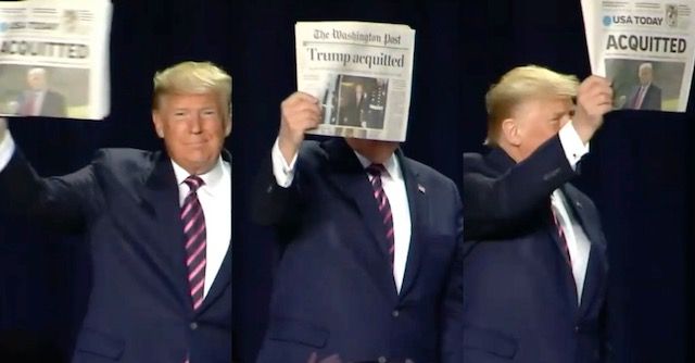 The contrasts could not have been any more stark. A smiling President Donald Trump shows up 40 minutes late to the National Prayer Breakfast, gleefully grabbing several newspapers to brag about his acquittal, waving them in the air to celebrate himself. Contrast that with a respectfully solemn Speaker of the House Nancy Pelosi delivering a prayer for the poor and the persecuted.