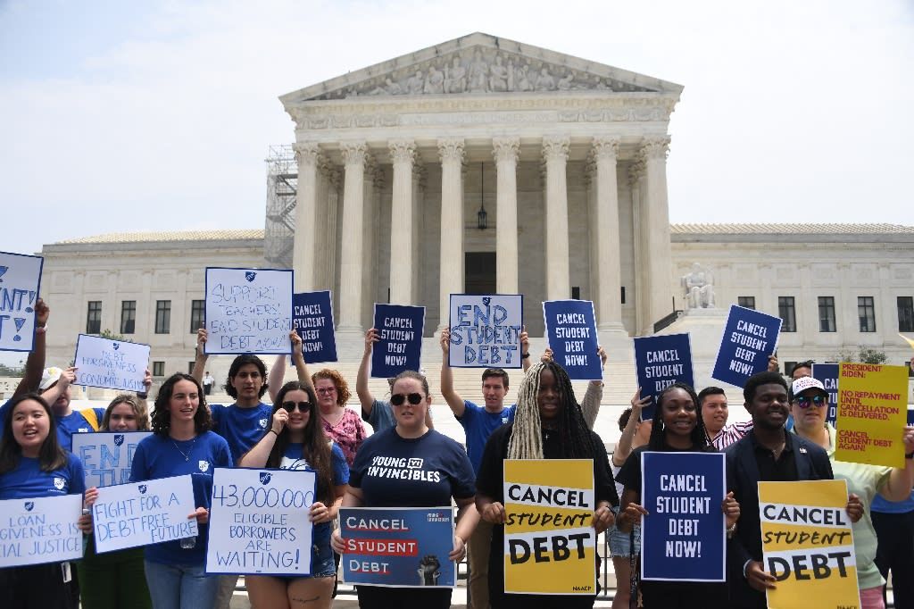 Supporters of student debt forgiveness demonstrate outside the US Supreme Court on June 30, 2023