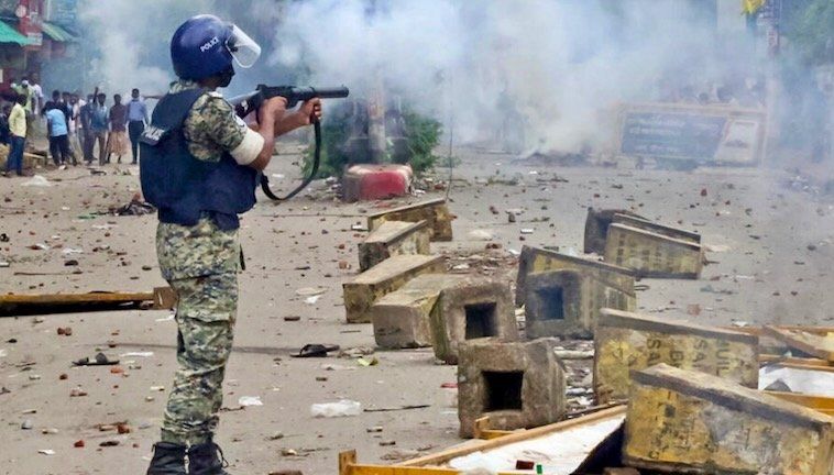 Police use tear gas to disperse student protestors in Bogura, Bangladesh on August 4, 2024. © AFP