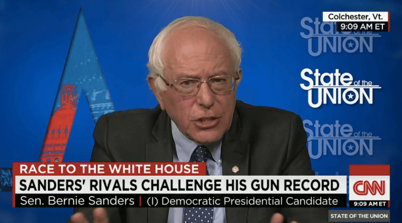 The Hill reported that Sanders was appearing on CNN's State of the Union with Jake Tapper. Tapper said that Sanders' rivals are portraying him as weak on the issue of gun control.