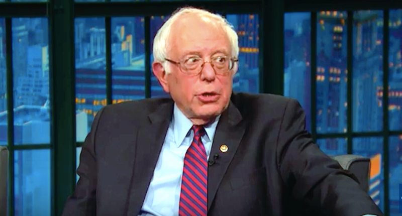 The Vermont senator appeared Thursday night on "Late Night," where Meyers asked whether he regretted doubling down on his attack earlier that day on Clinton and her credentials.