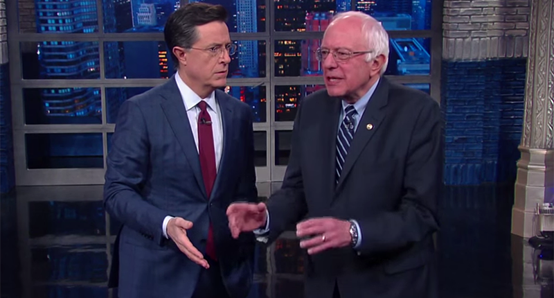 Stephen Gets Some Help Opening The Show from Bernie Sanders (Screenshot)