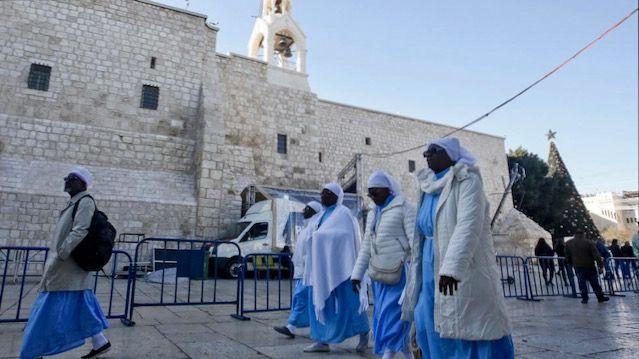 Palestinians and foreigners began converging on the "little town" in the Israeli-occupied West Bank from early morning, with Christmas Eve festivities taking place in and around the Church of the Nativity.