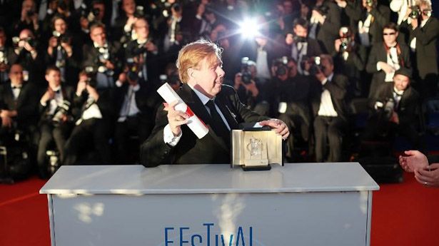After receiving the prize, an emotional Spall told the audience in the Cannes festival hall he was trying to fight back tears, and lauded his 33 years of collaboration with Leigh.