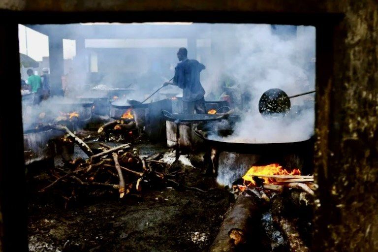 Cooks work over open fires in Kivukoni fish market in Dar es Salaam, Tanzania (Daniel Hayduk/AFP)