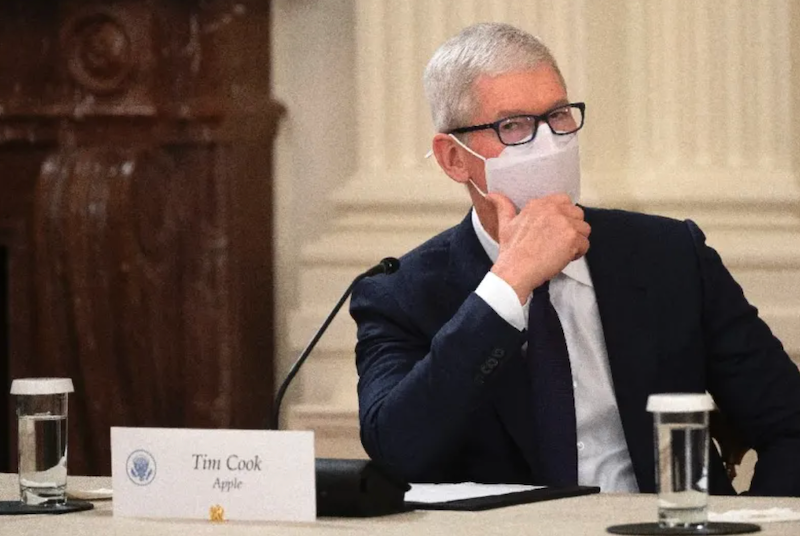 Apple CEO Tim Cook attends a meeting with US President Joe Biden on how to improve cybersecurity