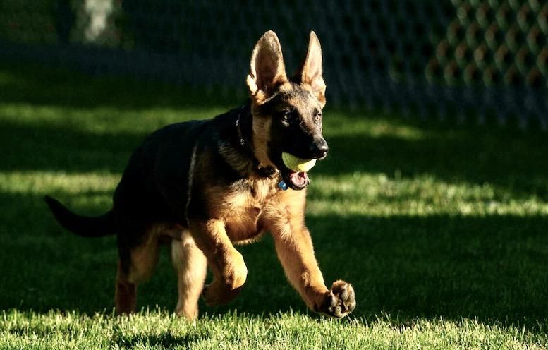 "Welcome to the White House, Commander," Biden tweeted along with a photo of the pup running with a tennis ball in his mouth.
