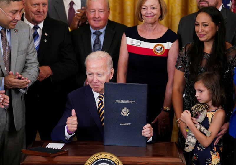 By Nandita Bose SALT LAKE CITY (Reuters) - President Joe Biden visited a U.S. veterans' medical center in Utah on Thursday to mark the one-year anniversary of the signing of legislation that provides aid to veterans sickened by gases from military toxic burn pits. Biden is at the end of a three-state swing through the American West to invigorate his reelection bid by touting the economy, new infrastructure projects and legislative accomplishments to Americans, many of whom are unhappy about the direction of the country. Biden spoke to veterans at the George E. Wahlen Department of Veterans Aff...