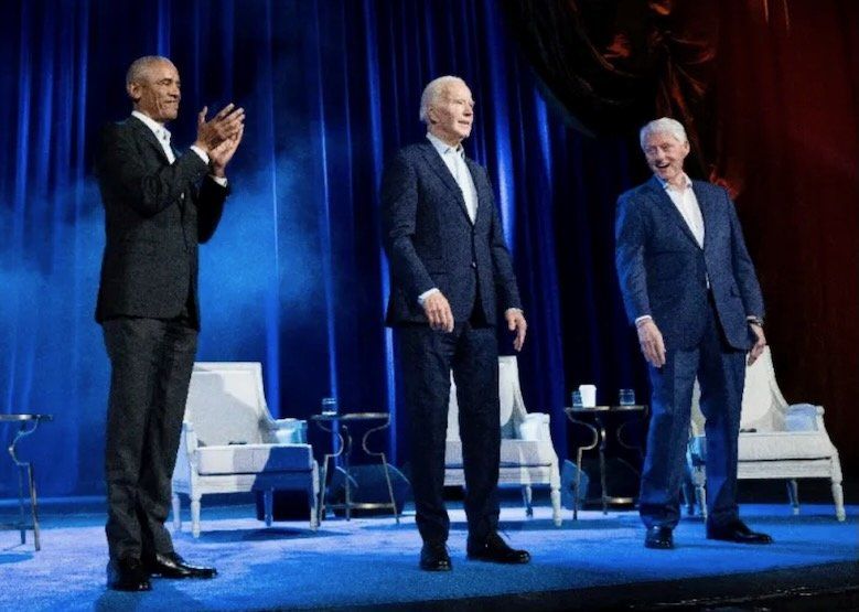 U.S. President Joe Biden was joined in New York on Thursday by his predecessors Barack Obama and Bill Clinton at a blockbuster fundraising event where he collected $25 million to go towards his re-election bid.