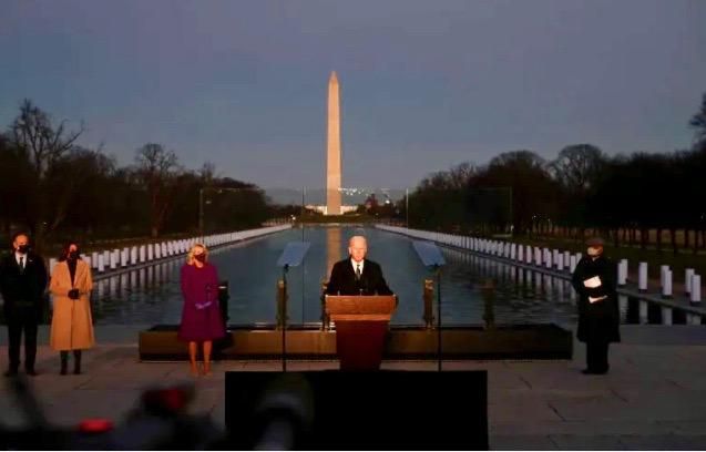 With the death toll soaring past 400,000, Biden on Tuesday led a powerful tribute to victims of Covid-19 as he arrived in Washington.