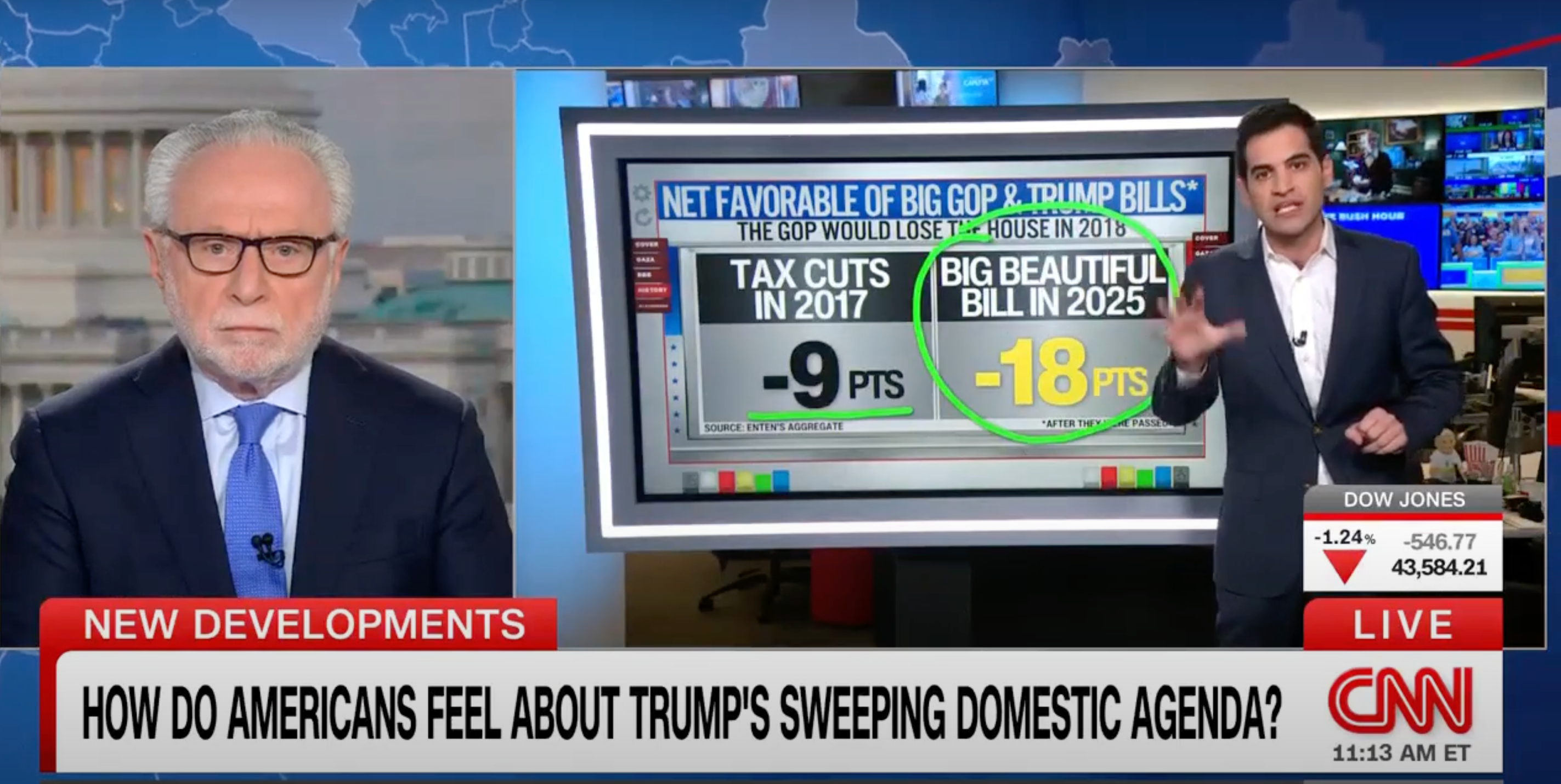 "Minus nine points. Not too hot to trot, but clearly much better than the average of polling right now in the Big Beautiful Bill," Enten said, adding, "18 points underwater. This bill is twice as unpopular as those tax cuts were."