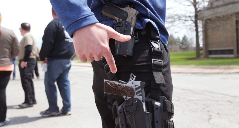 States' requirements on concealed guns vary widely. Some states deny permits to people who have committed domestic violence or other crimes. Eight do not require permits at all.