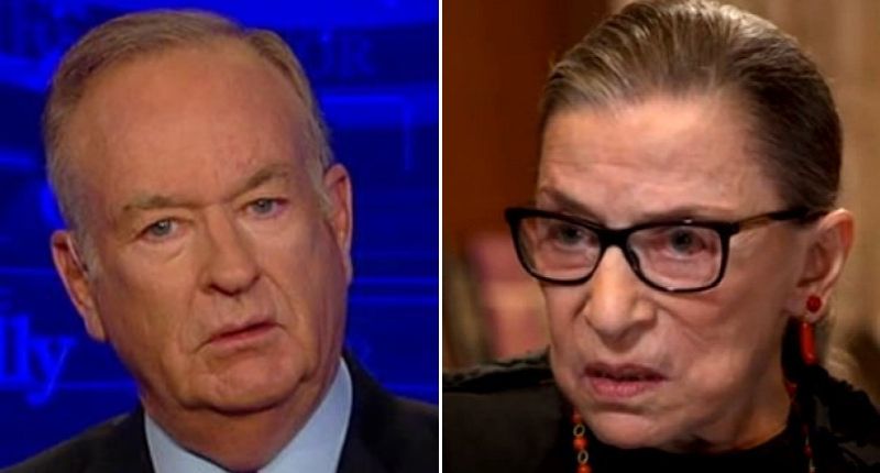 Ex-Fox News host Bill O'Reilly (left) and Supreme Court Justice Ruth Bader Ginsburg (right). Images via screengrab.