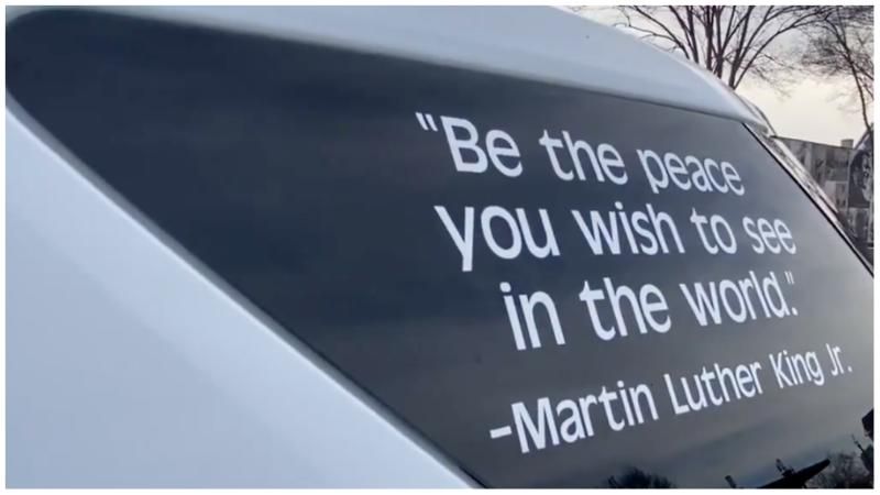 "Be the peace you wish to see in the world – Martin Luther King Jr." the quote pasted on the vehicle's rear windscreen reads, Vice News first reported.