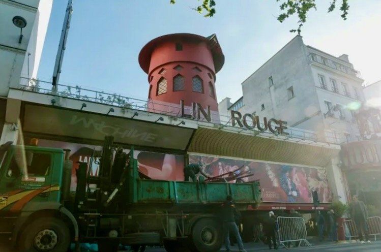 The blades of the windmill on top of the Moulin Rouge cabaret, one of the most famous landmarks in Paris, collapsed during the night, firefighters said Thursday, just months before the French capital hosts the Olympics.