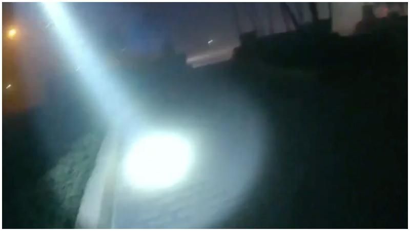 In another video, an officer makes his way down a walkway while voices can be heard in the background.