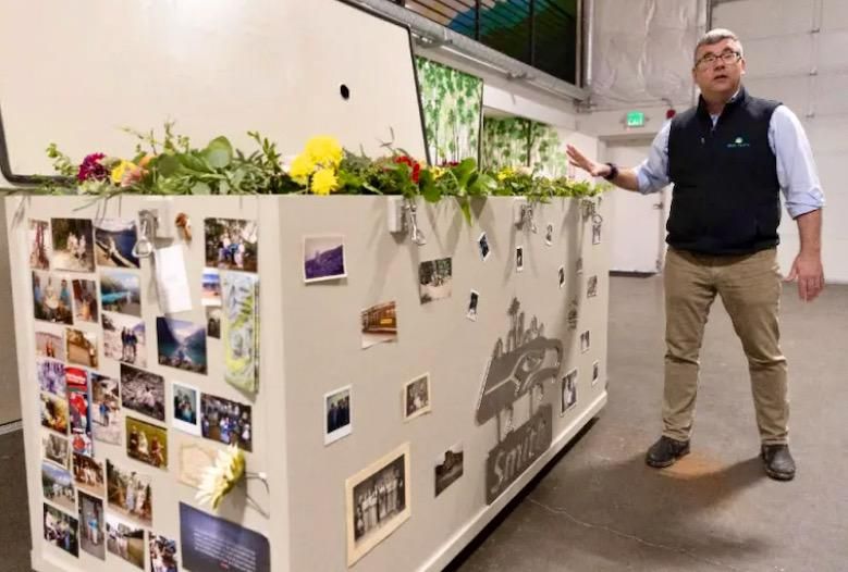 Bodies in vessels are not embalmed, and family members are invited to add flowers or compostable mementos to the straw and other natural ingredients used in the process.