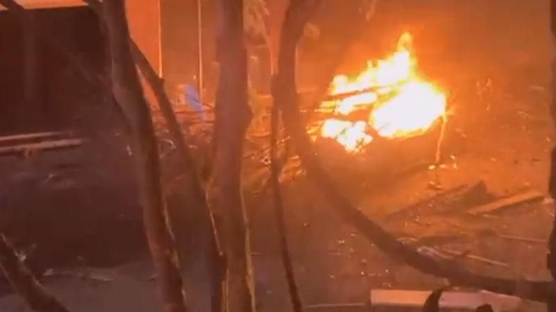 Video posted to social media shows flaming wreckage in downtown Nashville. (Screenshot/Facebook.com)