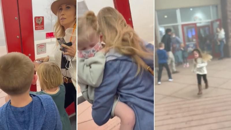 Video shows frantic families and a smoke-filled parking lot.