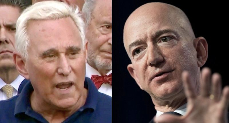 Roger Stone and Jeff Bezos (Photos: Screen capture and AFP/File / Jim WATSON)