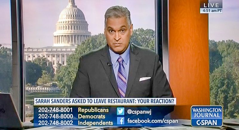During Monday's edition of Washington Journal, host Pedro Echevarria asked callers for reaction to the news that Sanders had been asked to leave the restaurant over the administration's "zero tolerance" policy on immigration.