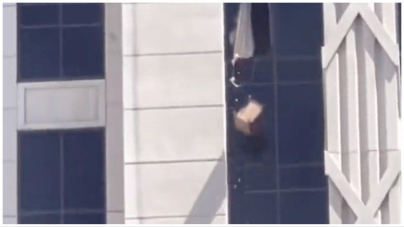 No shots have been fired. Video posted to Twitter shows someone throwing a box or a piece of furniture out of an upper floor window of the hotel.