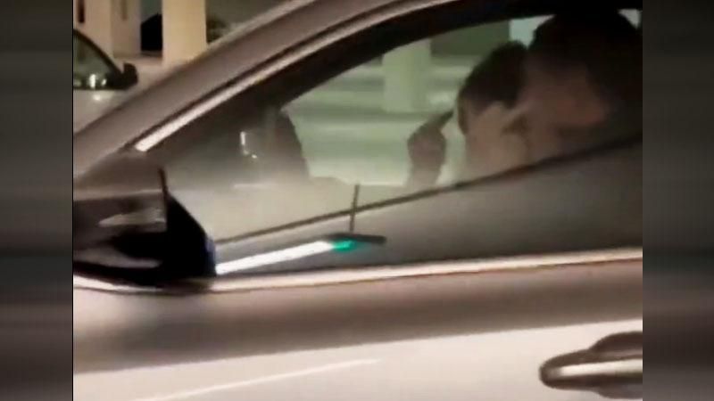 The video shows the two people in a parking structure, and the woman can be heard saying, "I love that we are not in their country. I love that we are not communism. I love that very much." She later lashes out at the person filming, saying, "America is a free country. Go back to China."