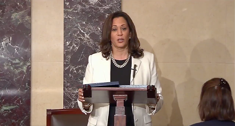 "Let’s speak the truth that when Americans demand recognition that their lives matter, or kneel to call attention to injustice, that that is an expression of free speech, protected by our Constitution, and they should not be threatened or bullied," Harris said.