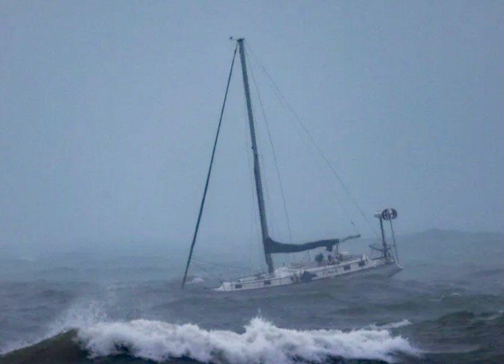 A moored boat is tossed by rough waters off Santa Barbara, California on February 4, 2024 (DAVID MCNEW/AFP)
