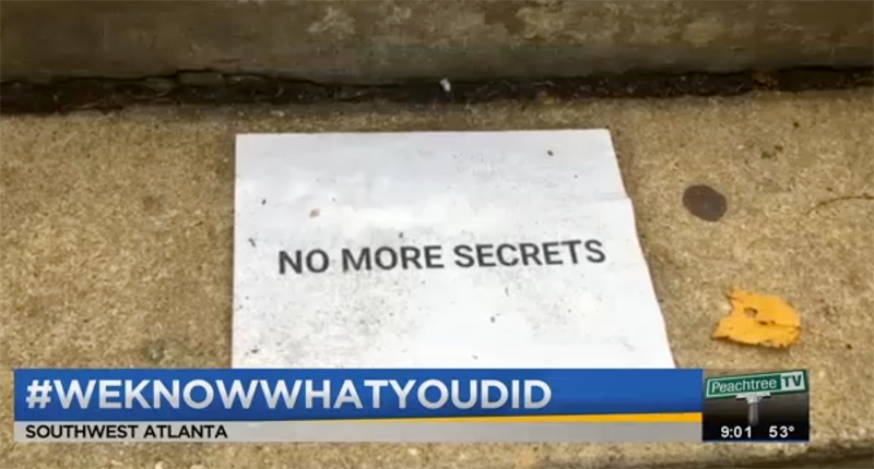 The signs used the provocative hashtag: #WeKnowWhatYouDid, which became the top trending topic on Twitter in Atlanta. Signs read "No More Secrets," "Morehouse Protects Rapists - Spelman Protects Rapists," with other signs listing the names of specific men.