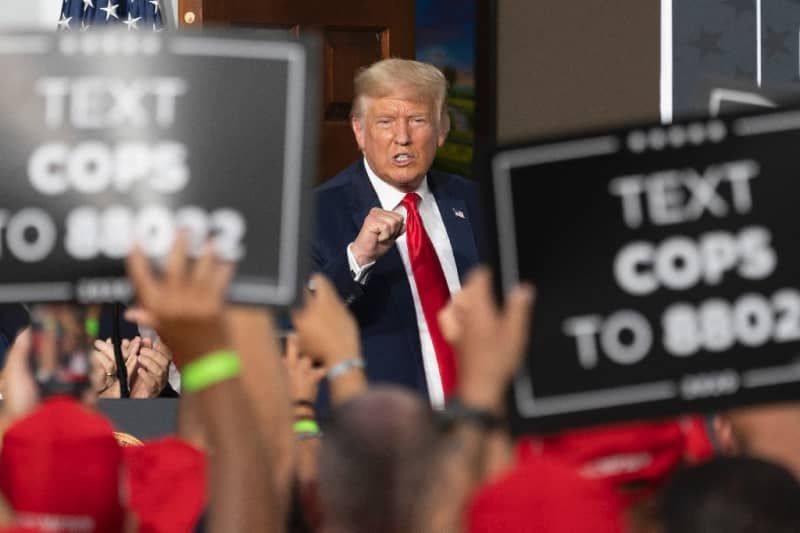 Bedminster (United States) (AFP) - Maybe it was the beautiful sunset, or the crowd of tough-looking men cheering his name, or even some reassurance from secret polling, but Donald Trump did not sound like a president who risks humiliation in less than 80 days.Standing on the steps of his luxury golf clubhouse in Bedminster, New Jersey, Trump addressed supporters from the New York Police Department union, as it announced its endorsement.And with the practiced enthusiasm of a real estate magnate who spent a lifetime selling shiny dreams, he offered them electoral fantasy.He told them he was not ...