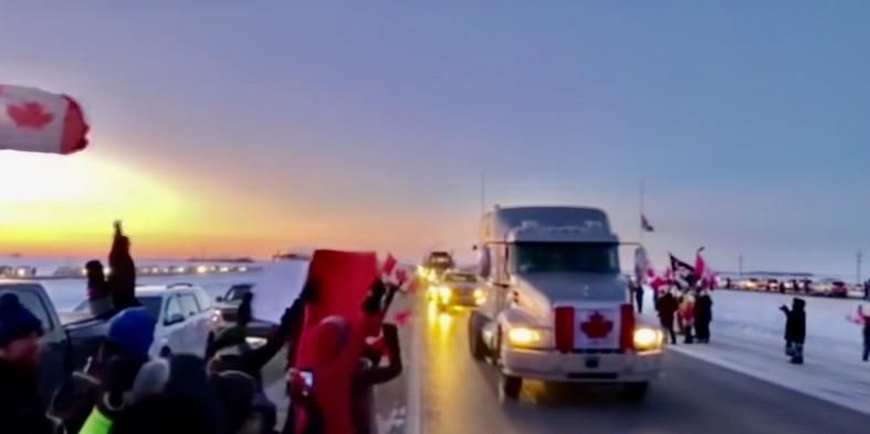The anti-vaccination convoy movement has raised some $7 million, and earned the support of Canadian conservative Parliament leader Erin O'Toole, who says he plans to meet with the truckers, as well as prominent American conservatives or libertarians from Donald Trump Jr. and Tucker Carlson to Elon Musk. Videos of the convoy have proliferated online, most depicting lines of tractor-trailers driving across Canada, variously set to dramatic film scores or Twisted Sister, and cheered on by throngs of spectators waving the Maple Leaf flag on highway shoulders and overpasses. Other images and videos have popped up too, showcasing the efforts of convoy supporters, including a sort of women's auxiliary unit singing "O Canada" while assembling sandwiches for the truckers.