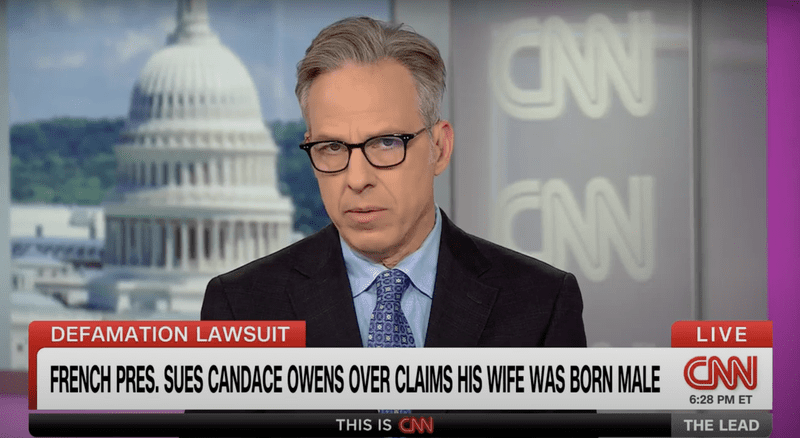 Tapper was discussing a defamation lawsuit filed by President Emmanuel Macron and his wife, Brigitte, against Owens with guest Tom Clare, the Macrons' lawyer in the case. Clare described numerous instances where the Macrons reached out to Owens in an attempt to prevent her from spreading the claims about Brigitte. However, Clare said Owens ignored their requests and instead spread them further.