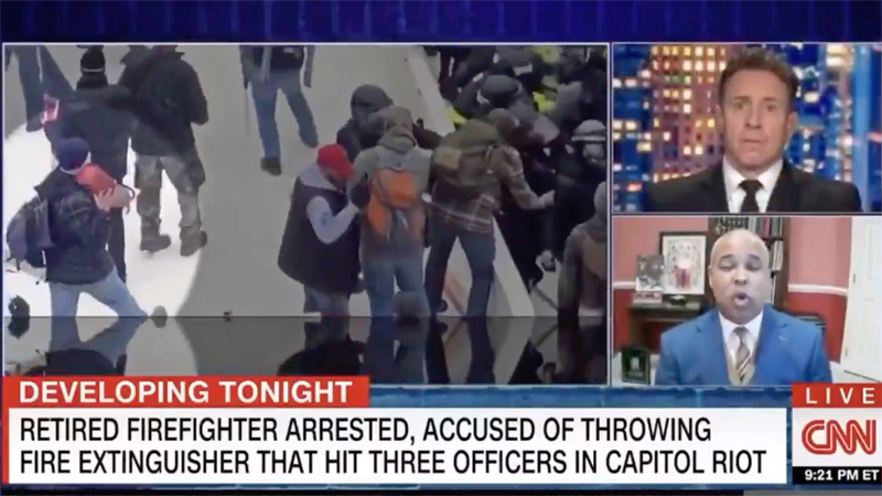CNN's Chris Cuomo on Friday interviewed the attorney for the retired firefighter who is accused of throwing a fire extinguisher.