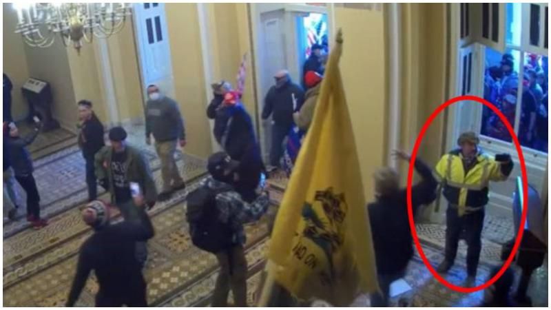 Court records show that Webler was recorded by multiple security cameras wearing a bright yellow jacket and a QAnon flag as cape, making him easy to spot.