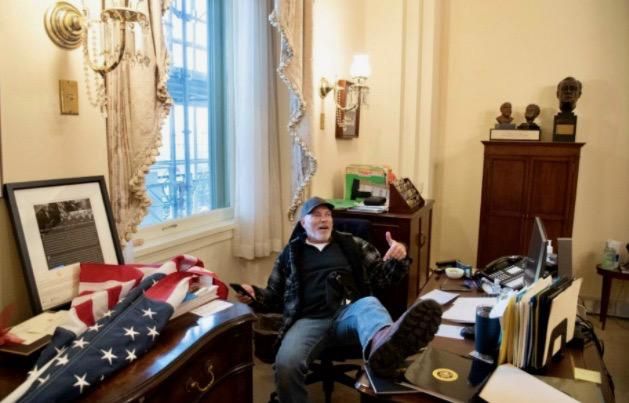 Trump supporter Richard Barnett inside the office of House Speaker Nancy Pelosi (Saul Loeb:AFP)