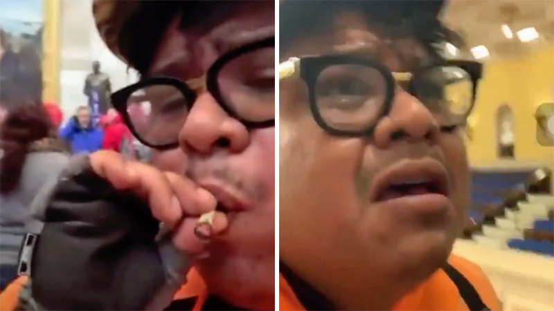 "Before exiting the Capitol, Sandlin stopped to live stream himself smoking marijuana inside."