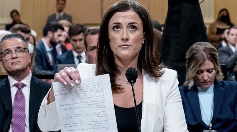 While Trump has variously described Hutchinson as a non-entity he had no memory of, and then as a "Social Climber" who "...lied about my attack on our great Secret Service, lied about her writing the White House note, lied about my throwing food at a wall in the Oval Office," other former Trump officials such as Alyssa Farah Griffin said the young woman was in the thick of things around Jan 6th and should be believed.