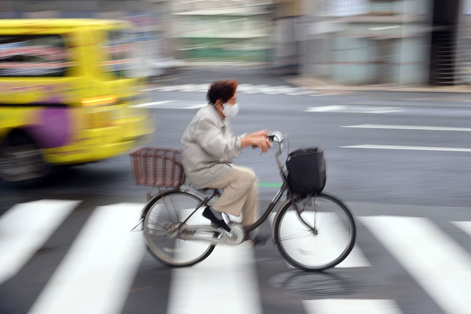 An elderly woman crosses a street on a bicycle in the Nihionbashi neighborhood. The number of centenarians in Japan surpassed 92,000 for the first time, hitting a record high for the 53rd consecutive year, a government report showed on Friday. Karl-Josef Hildenbrand/dpa