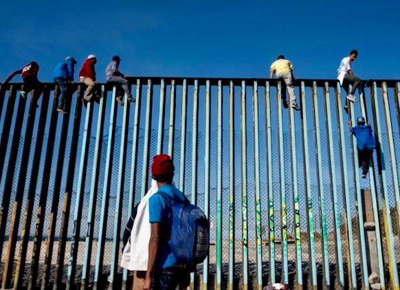 Large groups of migrants gathered on the beach in the northern city of Tijuana at the border fence that separates Mexico from California, climbing on top of it and even jumping down to the other side as US border patrol agents looked on -- before quickly scrambling back to the Mexican side.