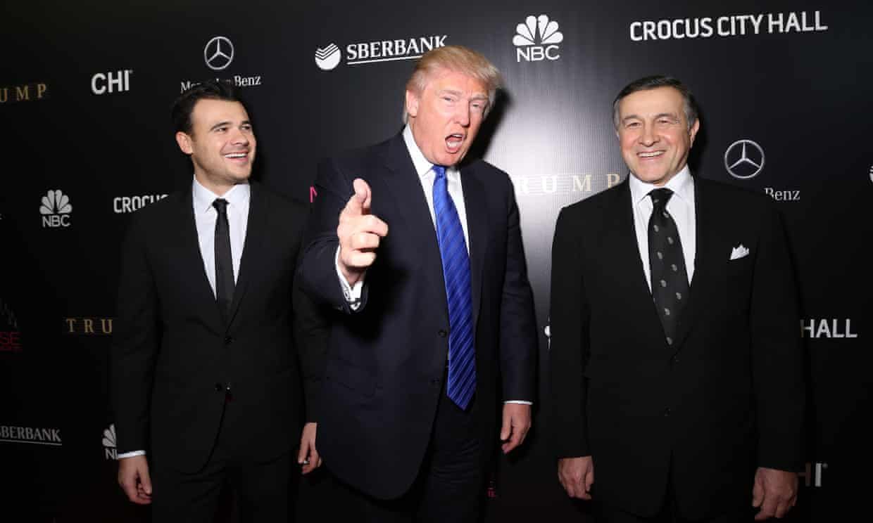 Emin Agalarov, Donald Trump and Aras Agalarov attend the Miss Universe pageant in Moscow, Russia on 9 November 2013. Victor Boyko/AFP