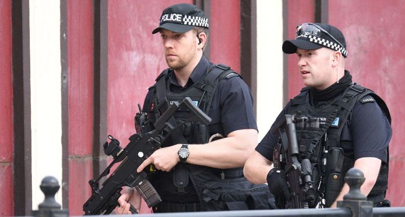 Armed police patrol near Manchester Arena on May 23, 2017 following a terror attack the previous evening (AFP Photo/Oli SCARFF )