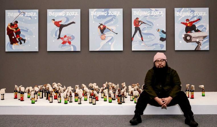Exhibiting a torture instrument as an innocent rocking chair, Chinese dissident artist Badiucao mocks the propaganda of Beijing in a new show -- while appropriating its codes.