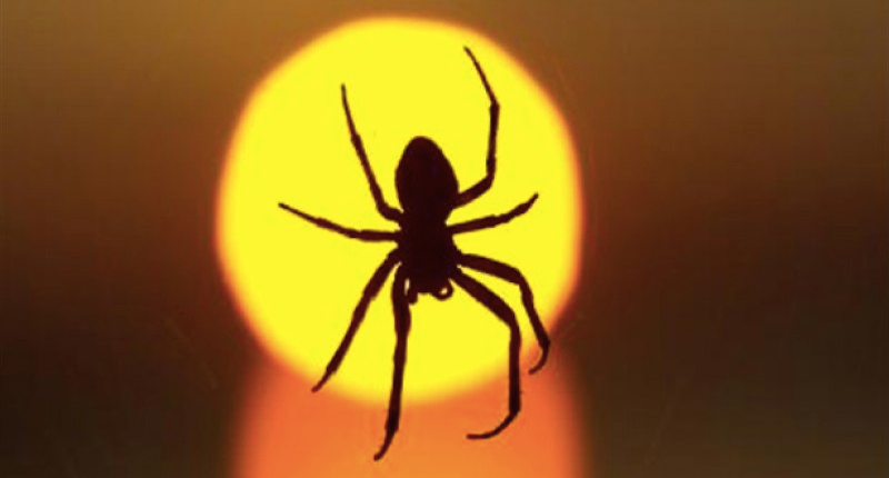 The silhouette of a spider is visible in front of light of the setting sun in Dresden, Germany, on June 7, 2013 [AFP]